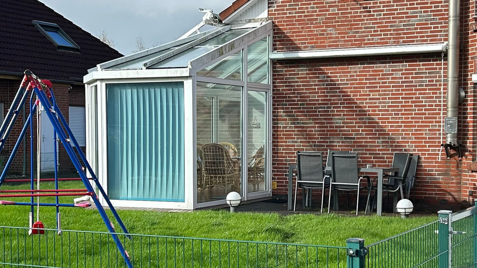Das Haus verfügt über einen großen beheizbaren Wintergarten, eine Garage und ein Klettergerüst im umzäunten Garten.